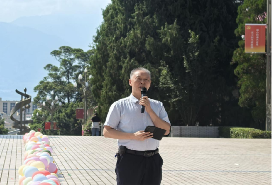 下午两点整,活动在秋日暖阳中准时拉开帷幕。各班级同学有序入场,在指定区域集合共同期待着这场精彩的文化盛宴。学院党委书记孙德刚致辞,他深情地阐述了达体舞作为彝族传统文化瑰宝的独特价值,指出这种舞蹈形式承载着民族的历史记忆,是铸牢中华民族共同体意识、增进友谊的重要纽带。特别提到,在近期的训练中,他目睹了同学们不畏辛苦、团结协作的排练场景,对大家的付出表示由衷的赞赏。最后,他预祝各参赛班级都能展现出最佳水平,在这个美好的秋日绽放青春光彩。