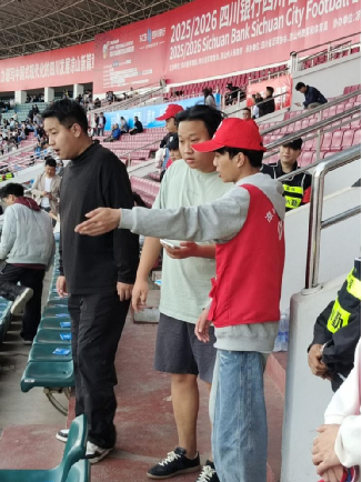 比赛当天,144名志愿者早早抵达凉山民族体育场,迅速奔赴各自岗位,开启全流程保障工作。在赛场入口,他们耐心引导观众检票入场、解答观赛咨询,提醒观众注意安全事项,用热情的笑容化解观众的疑惑;在看台区,他们定岗值守、维护现场秩序,及时劝阻不文明观赛行为,保障观赛环境有序和谐;在赛场内,他们负责物资搬运、场地保障、球员与工作人员后勤协助等工作,确保赛事物资供应及时、场地设施运行正常;在赛后,他们又主动参与场地清理、人流疏导等收尾工作,直至所有观众安全离场、赛场恢复整洁。