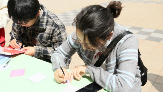 “撕掉标签,自在逐光”活动现场氛围温馨而有力量。活动展板左侧贴满各类偏见标签,同学们撕下标签,在右侧空白便利贴上写下对女生的真挚祝福与美好期许,用文字打破刻板印象,以善意汇聚温暖力量。志愿者们积极引导、耐心讲解,鼓励更多同学勇敢发声、传递正向价值观,共同打造平等包容的校园环境。