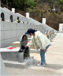 陵园深处,同学们自发带了水桶和抹布,俯身墓碑前,以清水涤去尘埃,以抹布拭去苔痕。因为,每一个名字都值得被温柔以待。