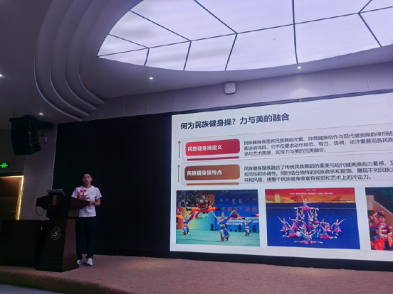 民族健身操代表队王营婴老师作代表队介绍