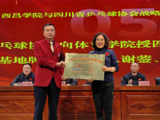 在全体与会人员的共同见证下,四川省乒乓球协会向西昌学院体育学院授予四块牌匾,分别为:“四川省乒乓球运动水平等级评定测试基地”“四川省青少年乒乓球后备人才亚高原训练基地”“四川省乒乓球裁判员培训基地”及“四川省乒乓球教练员培训基地”。授牌环节标志着双方合作正式启动,未来将携手推进乒乓球人才的全方位培养与社会服务推广。
