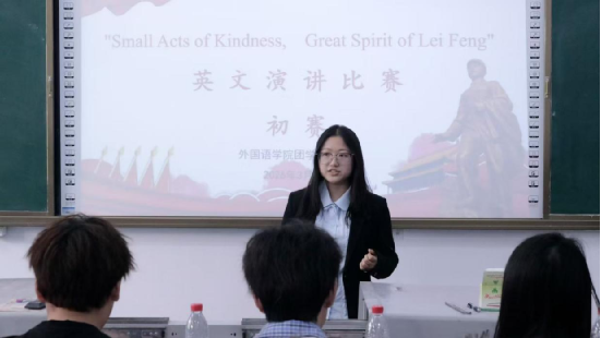 为激发同学们英语学习兴趣、提升口语表达能力,弘扬雷锋精神、传承中华优秀传统文化,我院于2026年3月19日在弘毅楼102教室举办“Small Acts of Kindness, Great Spirit of Lei Feng”英文演讲比赛初赛。