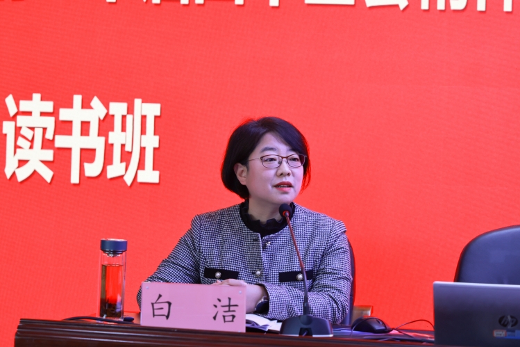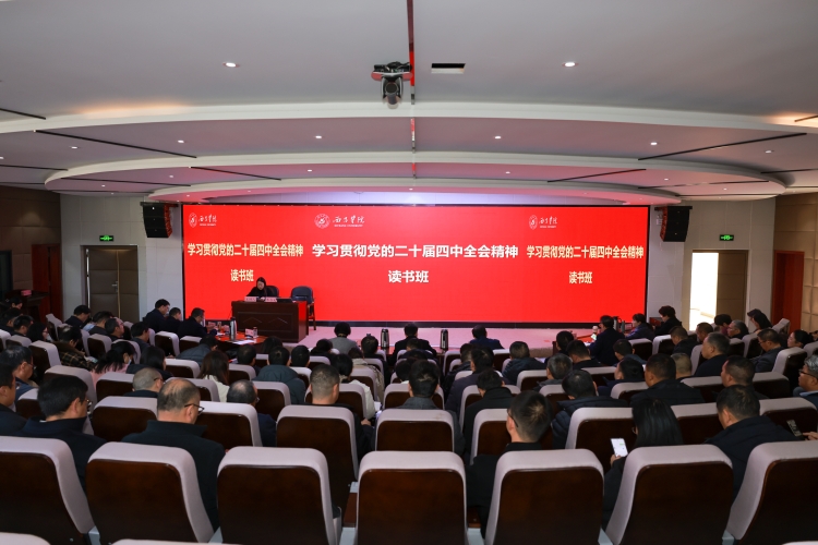 1月14日下午,学校在安宁校区图书馆报告厅举行学习贯彻党的二十届四中全会精神读书班开班式。学校党委书记朱占元作学习动员讲话,党委副书记、院长白洁作专题讲座,党委副书记张炜主持。
