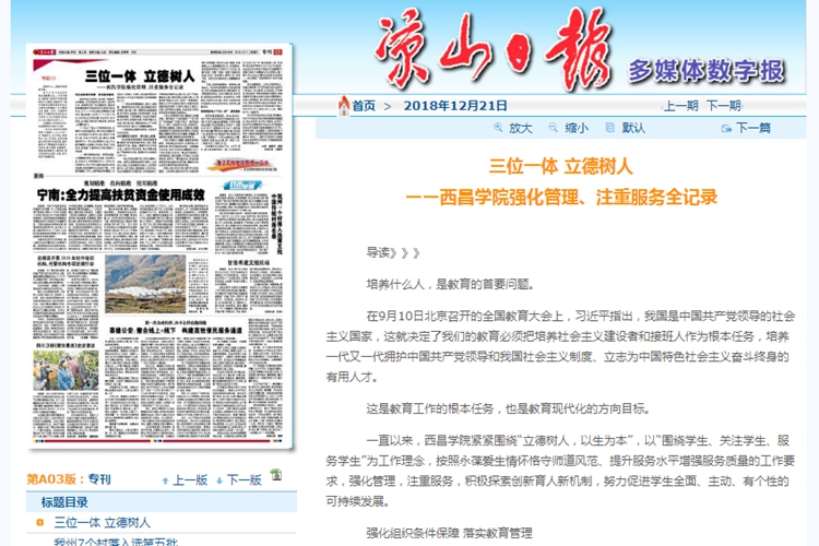 一直以来,西昌学院紧紧围绕“立德树人,以生为本”,以“围绕学生、关注学生、服务学生”为工作理念,按照永葆爱生情怀恪守师道风范、提升服务水平增强服务质量的工作要求,强化管理,注重服务,积极探索创新育人新机制,努力促进学生全面、主动、有个性的可持续发展。