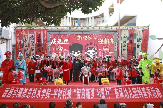 为积极响应国家关于加强科学普及与教育融合的号召,发挥高校服务社会的职能,2025年12月31日,西昌学院信息技术学院携手宇树科技走进西昌市东风幼儿园开展“智启新岁,AI童行”科普秀活动,将人工智能技术与元旦节日氛围深度融合,为孩子们带来了一场科技感十足的新年启蒙。