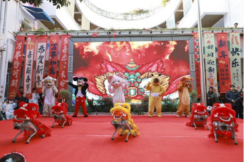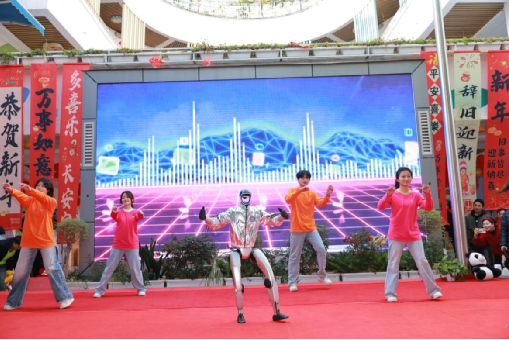 在“走出去”开展深度服务的同时,信息技术学院也积极“引进来”,联合全国智能机器人领军企业——宇树科技,共同走进西昌市东风幼儿园,为孩子们呈现了一场生动有趣的“AI科普秀”,实现了前沿科技与幼儿教育的近距离融合。智能机器人在动感音乐中登场,与志愿者共同演绎舞蹈,其精准流畅的动作引发孩子们阵阵惊叹;仿生机器狗身着“舞狮”装饰,与志愿者默契配合,完成了一段科技与趣味兼备的《舞狮》表演,现场气氛热烈。